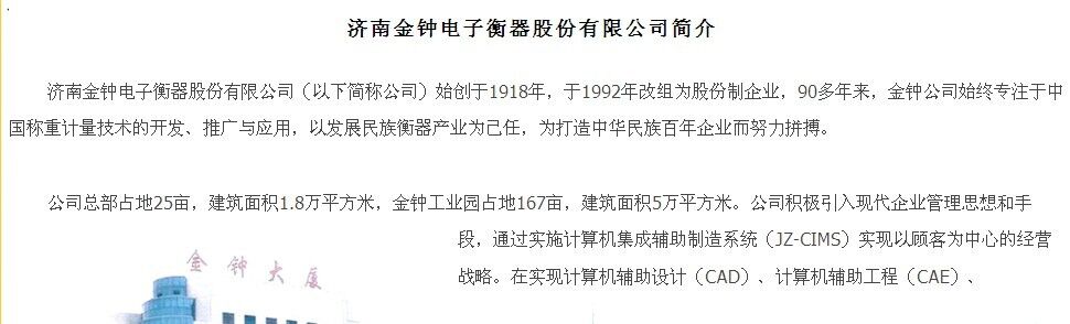 濟南金鐘電子衡器股份有限公司公司簡介,關于濟南金鐘電子衡器股份有限公司
