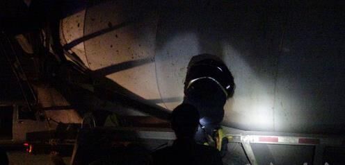 到場(chǎng)后,救援人員進(jìn)入混凝土攪拌車車窯發(fā)現(xiàn),被困男子卡在兩條攪拌機(jī)切割條的槽內(nèi),只有半條腿露在外面,人已不幸死亡。