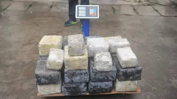 經(jīng)過近一個(gè)小時(shí)的努力,偵查人員從車廂內(nèi)的混凝土里取出了34包毒品可疑物,經(jīng)過稱量有94.65公斤。毒品可疑物被取出后,裝了滿滿3編織袋,當(dāng)時(shí)毒品被整齊擺放并澆灌在貨車車廂的景象,連從事多年緝毒工作的偵查員都驚嘆不已。
