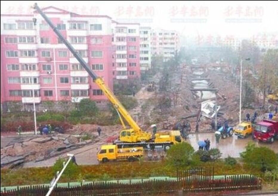 事故發(fā)生后,青島人民積極組織重建,此刻的黃島街道,銀行、飯店、商場(chǎng)、店鋪正常營(yíng)業(yè),市政搶修緊張進(jìn)行,現(xiàn)場(chǎng)清理進(jìn)展很快,崇明島路行人可通過(guò)。