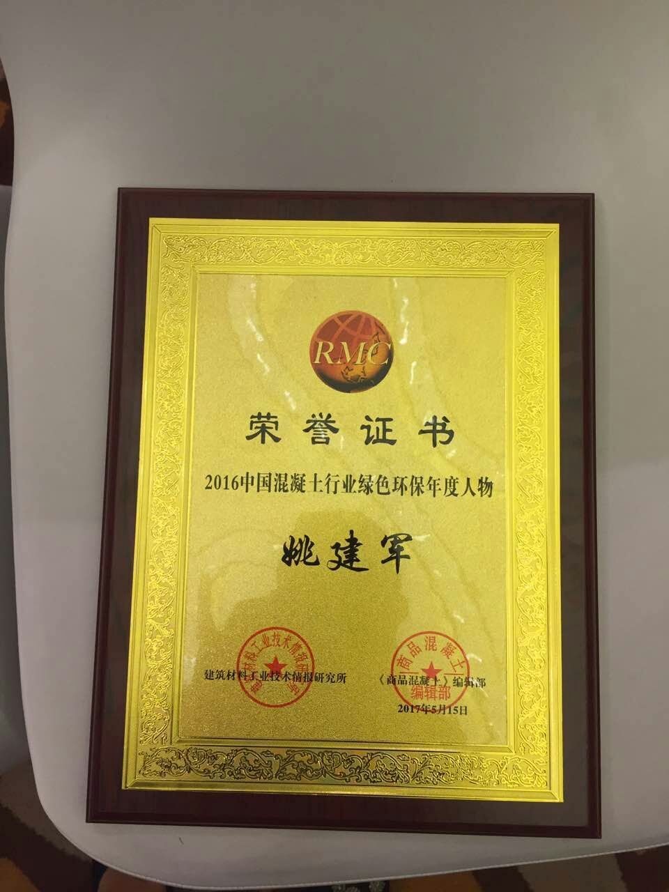 會議上,同時也公布了2016中國混凝土行業(yè)綠色環(huán)保年度人物,并由會議領(lǐng)導(dǎo)當場頒發(fā)了獲獎證書。