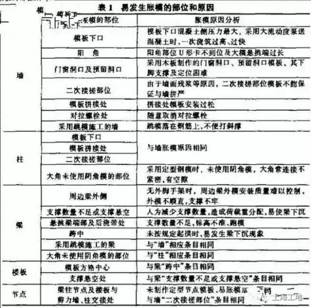 易發(fā)生脹模的部位和原因見(jiàn)下表: