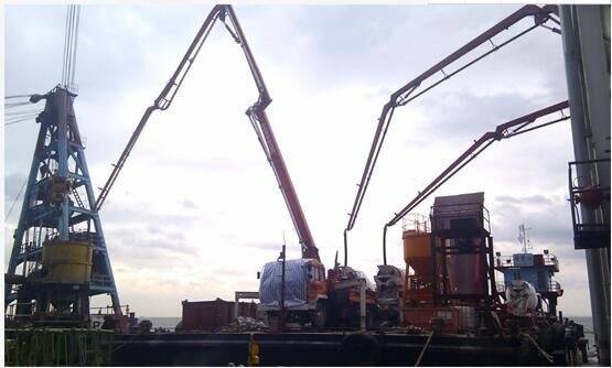 中聯(lián)重科拖泵固定在船上助力大橋橋墩混凝土澆筑