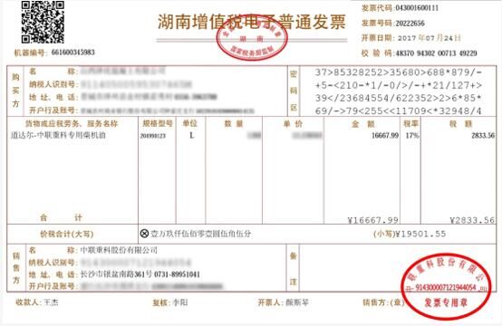 中聯(lián)重科誕生工程機械行業(yè)首張電子發(fā)票