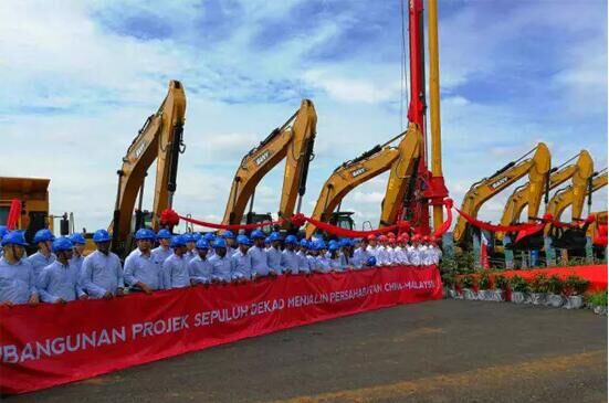 8月9日,在國(guó)務(wù)委員王勇和馬來西亞首相納吉布的見證下,由中國(guó)交建承建的馬來西亞東海岸鐵路開工儀式在彭亨州首府關(guān)丹舉行。該項(xiàng)目是目前中國(guó)企業(yè)海外在建的最大工程,也是“一帶一路”倡議下最大的單體建設(shè)項(xiàng)目。儀式上,三一的混凝土泵車、挖掘機(jī)、旋挖鉆機(jī)、起重機(jī)等大型機(jī)械設(shè)備集體亮相,備受各方矚目。