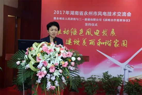 永州市委書記、市人大常委會主任李暉出席并講話,永州市委副書記、市長易佳良致辭,三一集團董事、三一重能董事長周福貴致辭,湖南省能源局副局長吳波,三一集團董事、三一重能副董事長毛中吾出席。永州市副市長嚴興德主持簽約儀式。