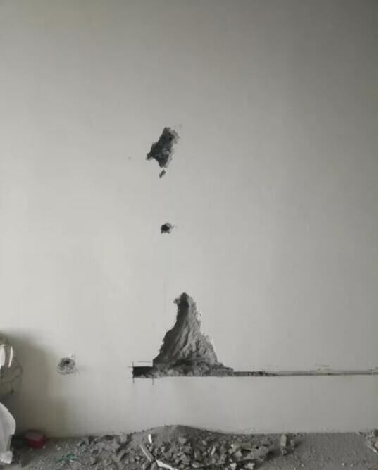 10月29日,記者再次來(lái)到萬(wàn)科·招商諾丁山小區(qū),發(fā)現(xiàn)石女士家與隔壁鄰居家相鄰的客廳墻壁有明顯鑿?fù)诤圹E,墻體距離客廳窗戶約3.5米處為承重墻,刺手或用工具都可從墻面上摳挖下來(lái)混凝土渣塊。24厘米厚的承重墻,裝修工人在11厘米處才挖到墻體內(nèi)的鋼筋,從地面到1.5米高度都是此種情況?!?0月25日,裝修工人發(fā)現(xiàn)承重墻疏松掉渣,且墻里鋼筋稀少,擔(dān)心出問(wèn)題就停工了。我再次找到開(kāi)發(fā)商和中建三局要求退房和裝修賠償,可是一拖再拖,始終沒(méi)有給解決?!笔繗鈶嵉卣f(shuō),她家在二樓,現(xiàn)在發(fā)現(xiàn)她家的承重墻和棚頂出現(xiàn)質(zhì)量問(wèn)題,她很擔(dān)心樓體的安全。