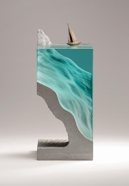 水、陸地、巖石被這位來(lái)自悉尼的雕塑家Ben Young用玻璃和混凝土打磨得惟妙惟肖,逼真同時(shí)很藝術(shù)。Ben Young出生在新西蘭,從事玻璃雕塑制作已有10多年的時(shí)間。他的作品看上去嚴(yán)絲合縫,精確細(xì)膩,盡管是混凝土這種粗糙的材料,也被打磨得如奶油般光滑。