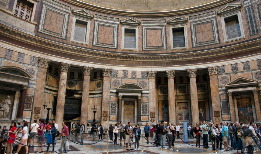 在羅馬市中心,有一個中央豎立著高大的尖頂方碑的噴水池,方碑基座雕有古羅馬神話場景,這一噴水池所在地就是羅馬萬神殿的前庭。它是至今完整保存的唯一一座羅馬帝國時期建筑