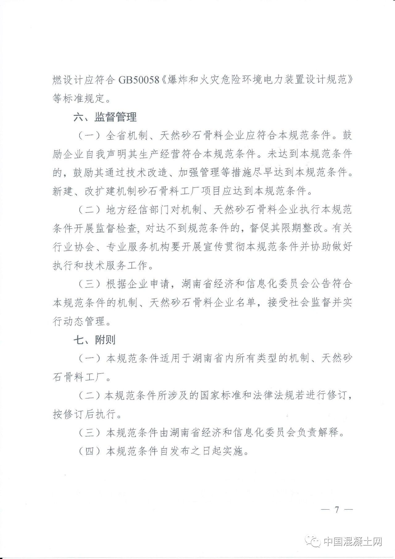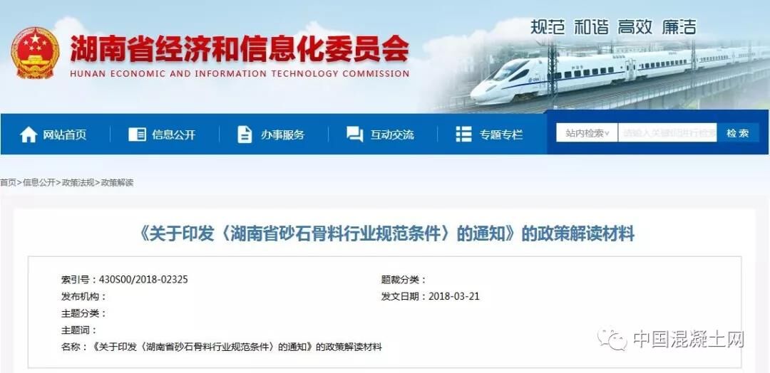 2018年3月2日,湖南省經(jīng)信委《關(guān)于印發(fā)〈湖南省砂石骨料行業(yè)規(guī)范條件〉的通知》(湘經(jīng)信原材料[2018]10號,以下簡稱《規(guī)范條件》)。該《規(guī)范條件》作為全省規(guī)范性文件已報(bào)省人民政府登記,經(jīng)省政府法制辦審查并依法登記,統(tǒng)一登記號:HNPR—2018—05001。