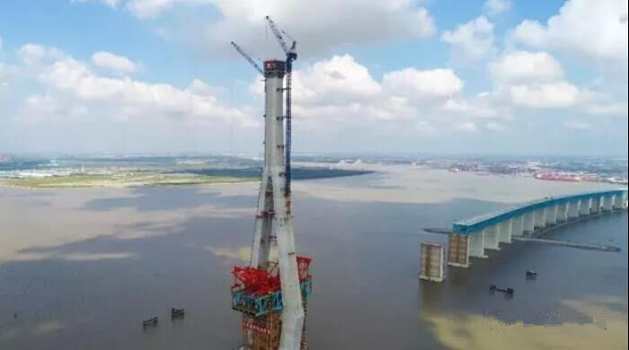 在國(guó)內(nèi),大部分橋梁主塔高度都在260米以下,300米以上極其少見(jiàn),而本次完成施工的大橋北側(cè)主塔,建設(shè)整體高達(dá)330米,相當(dāng)于110層高樓,為國(guó)內(nèi)最高主塔,同時(shí)也是世界公鐵兩用斜拉橋中最高主塔;混凝土澆筑達(dá)7.3萬(wàn)方,鋼筋1.1萬(wàn)噸,體量也為世界最大。
