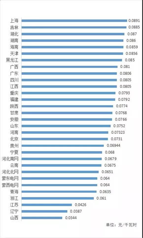 我國銷售電價(jià)按用電性質(zhì)分為4大類,分別是居民、農(nóng)業(yè)、大工業(yè)、一般工商業(yè)。一般工商業(yè)又分兩部分,一部分是商業(yè)用電,另一部分是小型工業(yè)用電,這些企業(yè)變壓器容量在315千伏安以下。商業(yè)企業(yè)和小型工業(yè)企業(yè)用電價(jià)格執(zhí)行一般工商業(yè)電價(jià)。從各類電價(jià)水平來看,全國平均銷售電價(jià)水平是每千瓦時(shí)0.65元,其中居民電價(jià)每千瓦時(shí)0.55元,農(nóng)業(yè)電價(jià)每千瓦時(shí)0.48元,大工業(yè)電價(jià)每千瓦時(shí)0.64元,一般工商業(yè)電價(jià)每千瓦時(shí)0.80元,一般工商業(yè)電價(jià)是這四類里面最高的。
