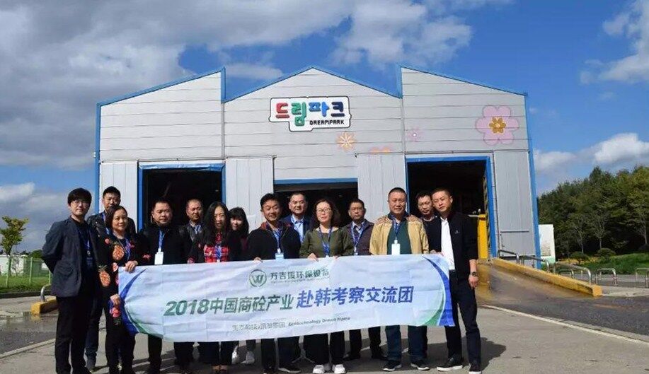 10日下午考察團(tuán)一行到達(dá)韓國最大的垃圾填埋廠,首先參觀生活食品垃圾運(yùn)輸車輛沖洗設(shè)備,此套設(shè)備由兩組車輛沖洗線構(gòu)成,每條線長度為50米,當(dāng)車輛駛?cè)胫粮袘?yīng)區(qū)設(shè)備自動(dòng)啟動(dòng)對(duì)車輛全方位立體式?jīng)_洗,沖洗中掉落的異物經(jīng)特制排泥裝置送至中央皮帶輸送機(jī)。車輛完成沖洗后駛出前對(duì)車身噴淋消毒去異味藥劑,最后烘干后離開。每日完成一千車次的清洗消毒工作。