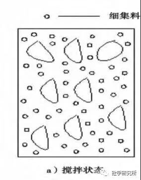 a、理想拌合狀態(tài),水泥被水充分包裹沒有游離水。