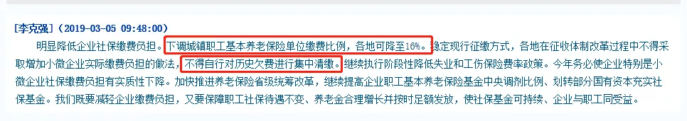 2、下調(diào)城鎮(zhèn)職工基本養(yǎng)老保險(xiǎn)單位繳費(fèi)比例,各地可降至16%!不得自行對(duì)歷史欠費(fèi)進(jìn)行集中清繳!