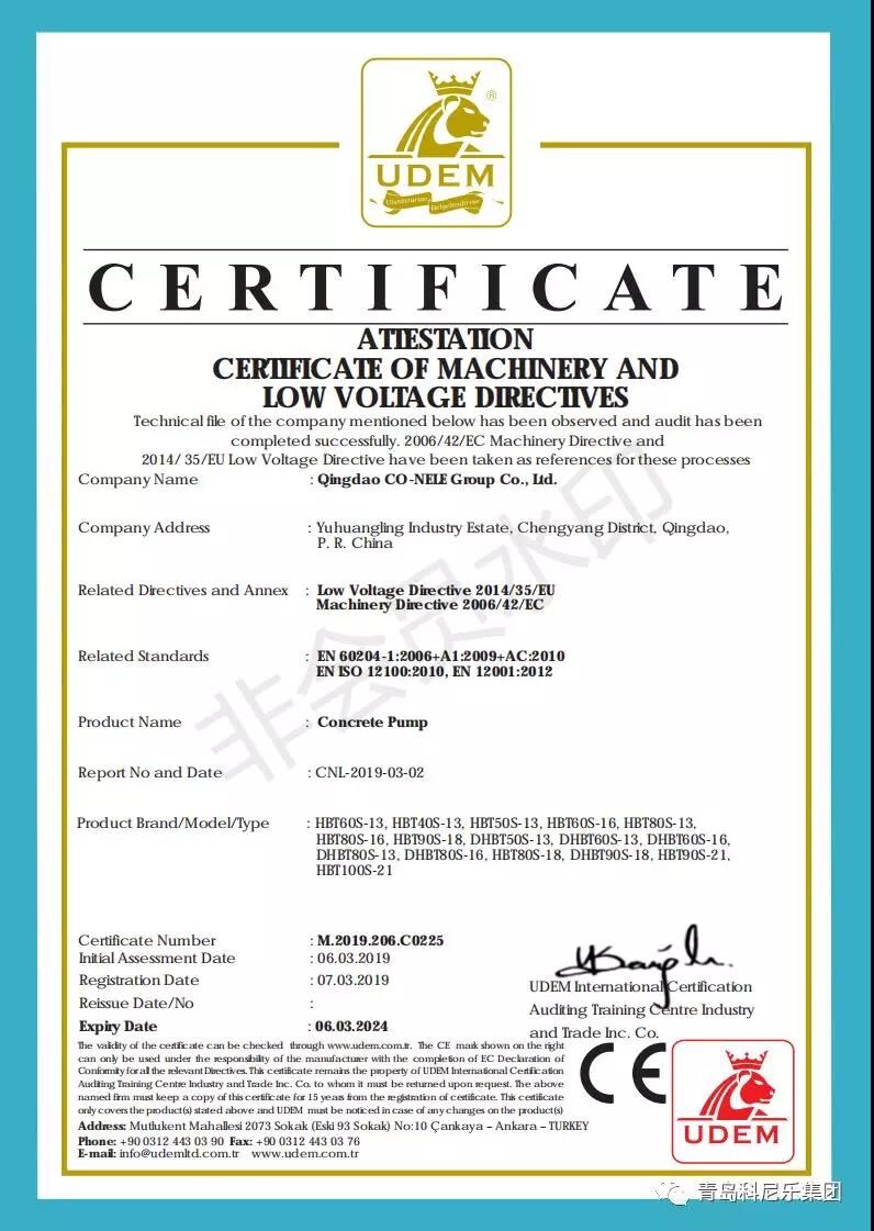 陽春三月,微風(fēng)習(xí)習(xí),科尼樂集團(tuán)的明星產(chǎn)品混凝土泵、混凝土布料機(jī)順利通過了歐盟CE認(rèn)證,這也代表著科尼樂集團(tuán)在提升產(chǎn)品品質(zhì)、拓展銷路、提升企業(yè)競爭力方面邁入了新臺(tái)階。