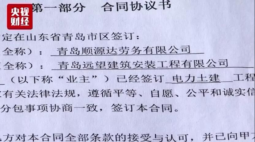 劉飛云介紹,該標(biāo)段總承包方為中國葛洲壩集團(tuán)電力有限責(zé)任公司,總承包方通過青島永利捷電力工程有限公司、青島順源達(dá)勞務(wù)有限公司等層層分包,最終由他所在的青島遠(yuǎn)望建筑安裝工程有限公司實際施工。