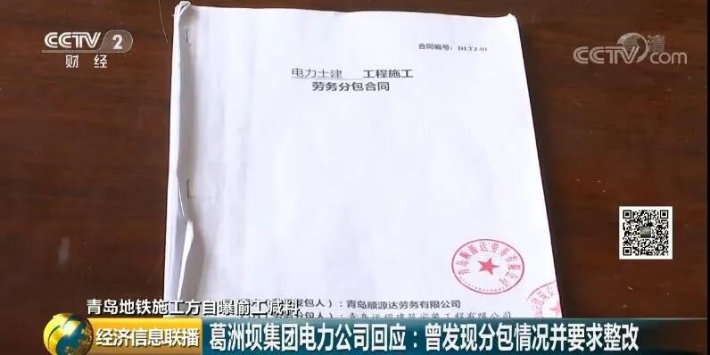 從青島地鐵到爆料人,一個總額1.4億元的地鐵配套項目工程,歷經(jīng)永利捷、順源達(dá)等多家公司分包、以及多位“中間人”轉(zhuǎn)手。其中環(huán)節(jié)到底有沒有涉嫌違法?央視記者走訪了青島地鐵集團(tuán)和葛洲壩電力公司。