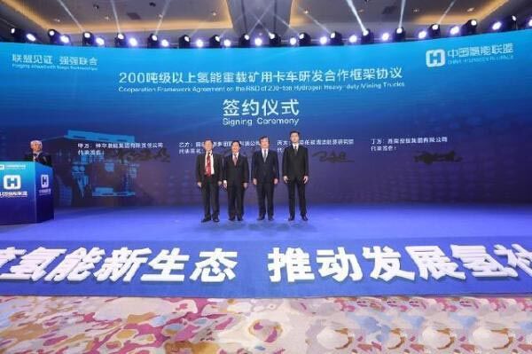 濰柴與國能集團(tuán)合作開展的200噸級氫能礦卡項(xiàng)目簽約儀式