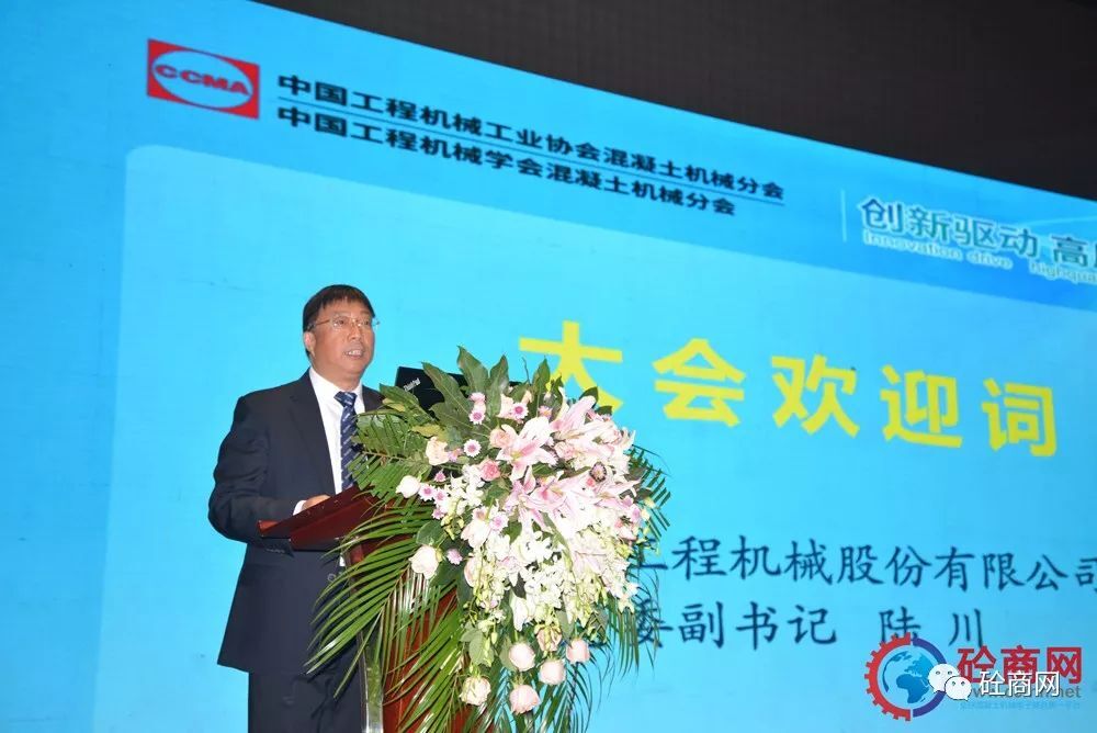 中國工程機(jī)械工業(yè)協(xié)會混凝土機(jī)械分會符忠軒會長以《牢記使命、砼心砼力、奮進(jìn)混凝土機(jī)械行業(yè)創(chuàng)新驅(qū)動高質(zhì)量發(fā)展的新時代》為題做精彩演講。符會長說,這次年會主題是“創(chuàng)新驅(qū)動,高質(zhì)量發(fā)展”,行業(yè)自2017年復(fù)蘇以來,一直保持著較好的發(fā)展勢頭,得益于國家基礎(chǔ)建設(shè)投資及伴隨“一帶一路”走出去的增量需求和存量更新?!案哔|(zhì)量發(fā)展”是2017年中國共產(chǎn)黨第十九次全國代表大會首次提出的新表述,表明中國經(jīng)濟(jì)將由高速增長階段向高質(zhì)量發(fā)展階段邁進(jìn)。中華人民共和國成立70年來,中國混凝土機(jī)械行業(yè)與新中國建設(shè)者同步,一代代中國混凝土機(jī)械人,在時代發(fā)展的偉大歷程中留下了自己深刻的印記。站在新的起點(diǎn),中國混凝土機(jī)械人將緊密團(tuán)結(jié)在以習(xí)近平同志為核心的黨中央周圍,不忘初心,牢記使命,勇于擔(dān)當(dāng),風(fēng)雨奮進(jìn),揚(yáng)帆再起航!