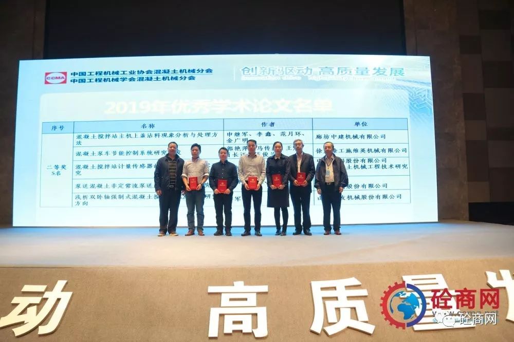 中國工程機(jī)械工業(yè)協(xié)會混凝土機(jī)械分會符忠軒會長以及中國工程機(jī)械工業(yè)協(xié)會混凝土機(jī)械分會顧問易君女士為優(yōu)秀論文一等獎獲得者頒發(fā)獲獎證書;
