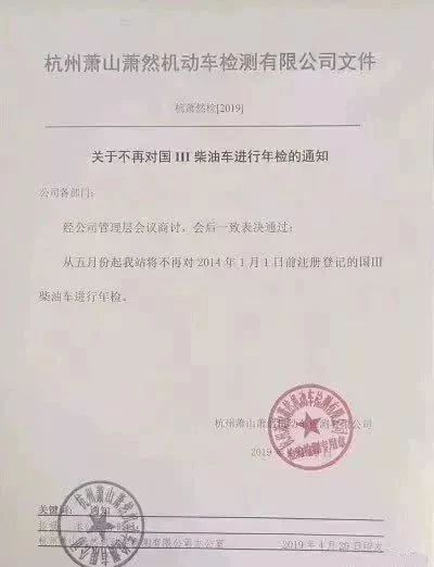 年初有消息稱,從5月起,杭州蕭山蕭然機(jī)動(dòng)車檢測站將不再對2014年1月1日前注冊登記的國三柴油車進(jìn)行年檢!