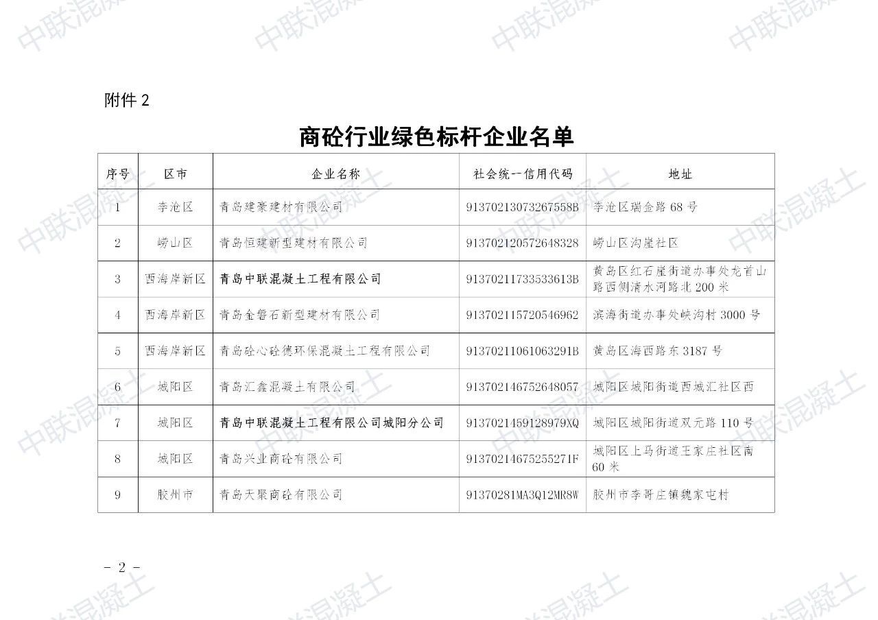 2020年1月3日,青島市重污染天氣專項應(yīng)急指揮部辦公室發(fā)布商砼行業(yè)綠色標(biāo)桿企業(yè)名單,全市170余家混凝土企業(yè)僅有15家通過評定,青島中聯(lián)混凝土和城陽分公司獨(dú)占2席。