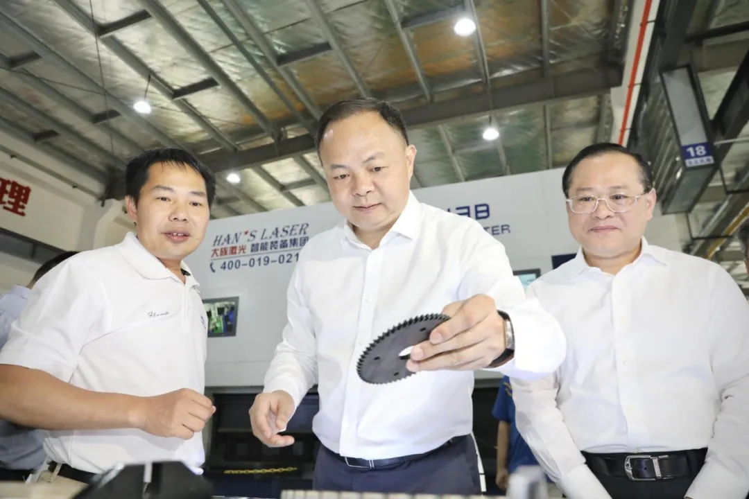 全國人大代表鄭建新(中)在湖南大族智能裝備有限公司調研