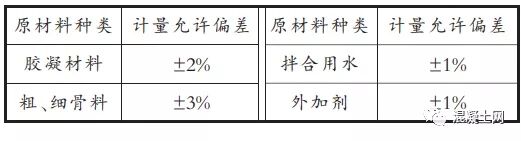 表1 每盤(pán)混凝土原材料計(jì)量偏差允許偏差