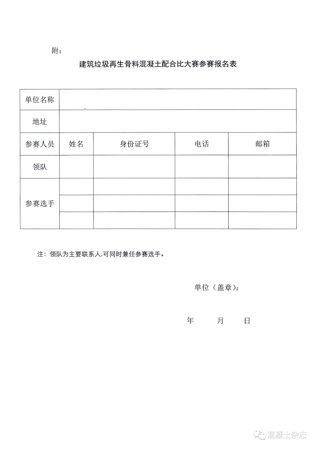 為配合《住房和城鄉(xiāng)建設(shè)部關(guān)于推進建筑垃圾減量化的指導(dǎo)意見》(建質(zhì)〔2020〕46號)的發(fā)布,進一步推動混凝土行業(yè)建筑垃圾消納和碳減排,為我國2030年前實現(xiàn)碳達峰、2060年前實現(xiàn)碳中和的目標做出混凝土行業(yè)的貢獻,現(xiàn)決定于2021年9月12日~15日于浙江省杭州市舉辦建筑垃圾再生骨料混凝土配合比大賽。