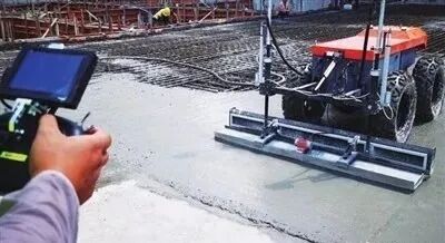 通過高速旋轉(zhuǎn)、擺動角度、抹平定型,地面抹平機器人的“機械手臂”在設(shè)定程序的控制下不會留下死角。工作人員介紹,傳統(tǒng)磨平機在作業(yè)時,需要工人花大力氣穩(wěn)住把手移動操作,而現(xiàn)在只需遙控搖桿,施工效率是原來的2-3倍。
