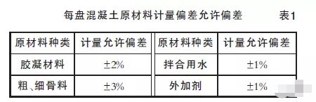 《混凝土質(zhì)量控制標(biāo)準(zhǔn)》(GB50164-2011)第6.3.2條每盤混凝土原材料計(jì)量的允許偏差應(yīng)符合表1的規(guī)定,原材料計(jì)量偏差應(yīng)每班檢查1次。