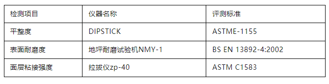 參評項目包括混凝土面層地坪、水泥砂漿面層地坪、整體樹脂地坪系統(tǒng)三大類(下分13種細分地坪)?!癢OCA 地坪獎-亞洲賽區(qū)”(WOCA AWARDS)執(zhí)行國際先進的檢測檢驗標準,對候選項目進行現(xiàn)場性能檢測,依據(jù)三個維度——平整度(FF/FL Testing)、表面耐磨度(BCA Abrasion Testing)、面層粘接強度(Pull-off Adhesion Testing)的測評數(shù)值加權(quán)系數(shù)后得出最終分數(shù)進行評選。