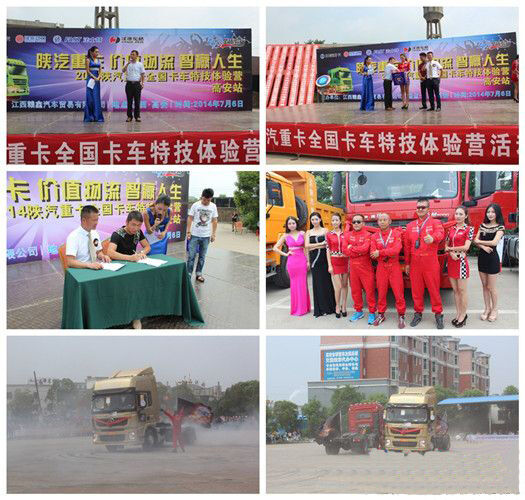 在南昌、九江、上饒、高安地區(qū)舉辦的4場陜汽重卡卡車特技體驗營,參與人數(shù)眾多,配套廠家、改裝廠、渠道經(jīng)銷商等積極參與。除法士特南昌辦、濰柴南昌辦全程參與外,各地區(qū)主要配套委改廠如湖北合力、湖北楚勝等也積極參加,渠道主力經(jīng)銷商江西國通、九江重型、江西陜汽、江西贛鑫、新余金海也全程參與,主動交流溝通。另外,還包括各保險公司、銀行、當?shù)卣嚓P(guān)部門也都出席或參與。