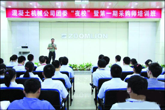 7月24日,混凝土機械公司團委“夜校”之第一期采購師培訓班在麓谷工業(yè)園正式開班,共計110余名員工參訓。