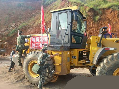 趕到災(zāi)區(qū)的徐工救援隊指揮徐楠聯(lián)系上當(dāng)?shù)卣筒筷牐谵k理好登記等相關(guān)手續(xù)后,積極請戰(zhàn)要求分派任務(wù),主動要求到最困難和最需設(shè)備的地方。中國武警部隊第三總隊領(lǐng)導(dǎo)經(jīng)過現(xiàn)場開會部署,決定臨時征用徐工一臺裝載機加入武警救援部隊。