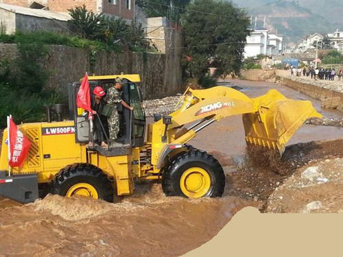 徐工裝載機在魯?shù)閰⑴c救援,疏通河道,防止暴雨引發(fā)洪水泥石流