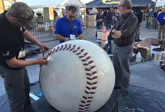 一個(gè)現(xiàn)場(chǎng)制作完成的“棒球”,除了顏色外,其實(shí)全部都是混凝土。