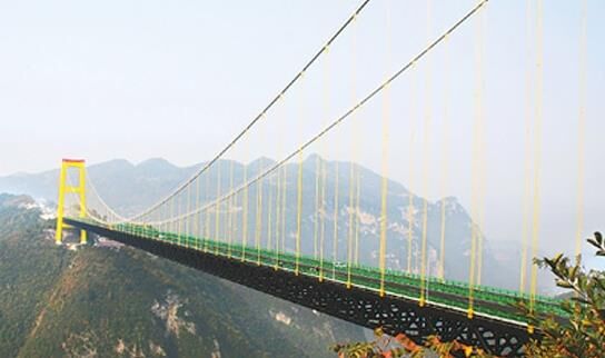 中聯(lián)重科塔機(jī)產(chǎn)品參建世界第一高橋龍?zhí)逗犹卮髽颍胺Q“天路中的天橋”。大橋主跨900米,索塔頂距谷底650米,橋面距谷底560米,相當(dāng)于200層樓高,比目前世界最高橋法國(guó)米約大橋分別高307米和290米。大橋的另一端距離公路隧道23米,借助火箭彈發(fā)射先導(dǎo)索過(guò)峽谷,開(kāi)創(chuàng)了國(guó)內(nèi)乃至世界建橋史上的先河。龍?zhí)逗犹卮髽虻淖畲髽蚨崭哌_(dá)178米,創(chuàng)下連續(xù)鋼構(gòu)箱梁橋墩高度的世界之最,被譽(yù)為“世界第一高懸索橋”。