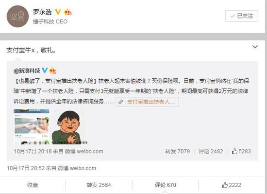 “扶老人險(xiǎn)”一上線立即引起了網(wǎng)友們的熱議,就連羅永浩老師也在微博上公開力挺,而據(jù)支付寶方面的統(tǒng)計(jì),該險(xiǎn)種開售3天便有2.6萬(wàn)人投保,可見其關(guān)注度。