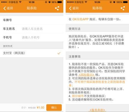 貼條險(xiǎn)是由《OK車險(xiǎn)》在今年3月推出的險(xiǎn)種,用戶需支付1元,若愛車不幸被貼條可減免100元,保障期為一年,使用后可重復(fù)購(gòu)買但價(jià)格會(huì)相應(yīng)提高。這款保險(xiǎn)同樣銷售火爆,幾天時(shí)間即賣出了上萬(wàn)份,《OK車險(xiǎn)》也因此名聲大噪。