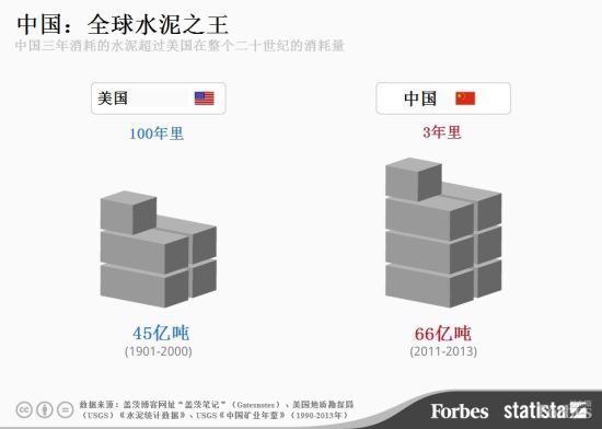 比爾·蓋茨做了一個(gè)令人震撼的對(duì)比,讓大家對(duì)中國(guó)在二十一世紀(jì)對(duì)水泥的狼吞虎咽有一個(gè)直觀認(rèn)識(shí)。比爾·蓋茨在個(gè)人博客上表示,2011年至2013年期間,中國(guó)消耗了66億噸水泥,超過(guò)美國(guó)在整個(gè)二十世紀(jì)的消耗量。但是看看美國(guó)在1901年至2000年期間建造了哪些工程:各種摩天大樓、州際公路、胡佛水壩等等,而期間消耗的水泥總共只有45億噸。不過(guò),蓋茨沒有能夠呈現(xiàn)中美兩國(guó)地理環(huán)境、建筑習(xí)慣的差異,因而有些大驚小怪。