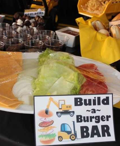 這里是主食區(qū),鑒于工程機(jī)械行業(yè)人人心靈手巧,請(qǐng)用此挖掘機(jī)DIY漢堡享用!各位,吃飽了也別忘了把這些土塊清清干凈那!