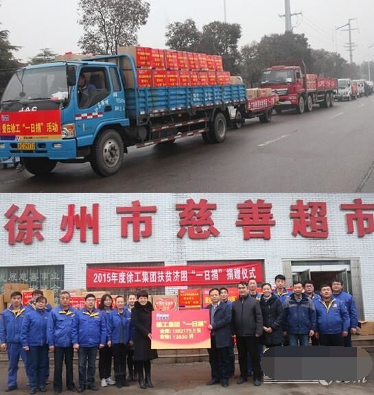 近日,八輛大卡車滿載著徐工全體員工的捐款和衣物,緩緩駛?cè)胄熘菔猩鐣头鲋行?,送去徐工承?dān)的社會責(zé)任、徐工人的美德。2015年,在各單位的全力支持和全體員工暖暖愛心的捐助下,徐工集團(tuán)扶貧濟困“一日捐”活動共收到捐款1382175.5元、捐衣物13830件,連續(xù)14年捐款捐物全市第一。