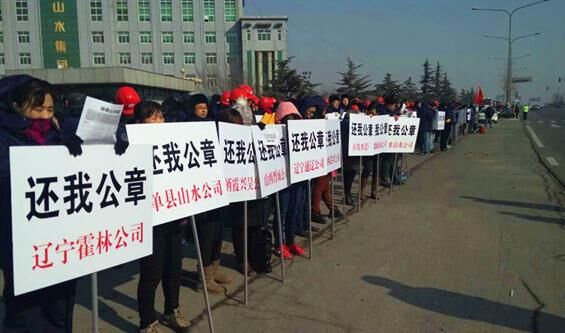 對于此次九省職工齊聚濟南總部討要公章一事,山東山水新總部一名負(fù)責(zé)人告訴記者,“這也是無奈之舉,企業(yè)要生產(chǎn),員工要生存,我們真的拖不起了?!?/span>