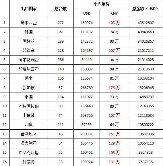 2015年1—11月我國(guó)塔機(jī)出口3098臺(tái),同比減少14.68%,出口金額達(dá)到39303.24萬(wàn)美元,同比減少6.95%,預(yù)計(jì)全年出口3300臺(tái)左右,相比國(guó)內(nèi)市場(chǎng)接近50%的銷量跌幅,塔機(jī)出口成績(jī)可嘉。尤其2015年上半年相比去年同期增長(zhǎng)了16.7%,但從7月份開(kāi)始逐月走低。從近10年的區(qū)域占比來(lái)看,中國(guó)塔機(jī)出口的市場(chǎng)一直由亞太地區(qū)市場(chǎng)占據(jù)絕對(duì)主力,從近三年的數(shù)據(jù)可以看出,雖然歷年各國(guó)排名都有變化,但除了俄羅斯聯(lián)邦、土耳其、巴西、阿爾及利亞等國(guó)家外,其他列于榜單中的國(guó)家全部位于亞洲區(qū)域,顯而易見(jiàn),我國(guó)塔機(jī)出口主要市場(chǎng)依舊是亞洲等發(fā)展中國(guó)家。(具體參見(jiàn)下圖:2015年1—11月塔機(jī)出口數(shù)據(jù))