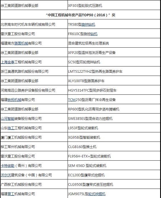 2016年3月31日,“2016工程機(jī)械產(chǎn)品發(fā)展(北京)論壇暨中國工程機(jī)械年度產(chǎn)品TOP50頒獎典禮”在北京隆重舉行。來自中國工程機(jī)械工業(yè)協(xié)會及下屬分支機(jī)構(gòu)、國家工程機(jī)械質(zhì)量監(jiān)督檢驗(yàn)中心、相關(guān)行業(yè)協(xié)會以及工程機(jī)械制造企業(yè)、施工企業(yè)、科研機(jī)構(gòu)、高校、新聞媒體的200余位嘉賓參加了這次年度盛會。