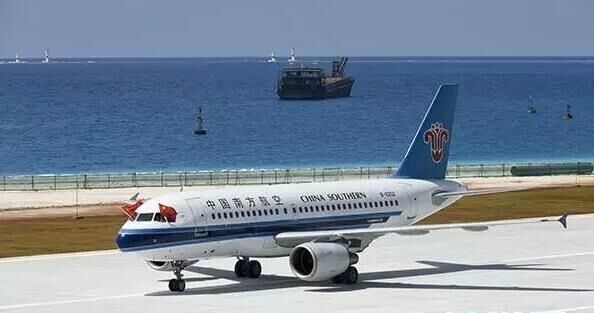 7月13日,中國(guó)南沙美濟(jì)礁渚碧礁新建機(jī)場(chǎng)試飛成功。