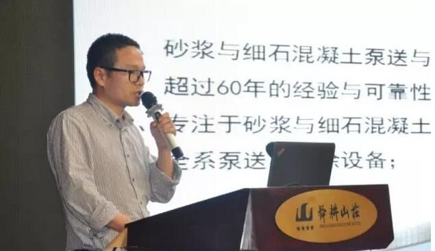 ▼ 南方路機(jī)市場(chǎng)總監(jiān)周煒做“未來智能化干混砂漿工廠”的演講;