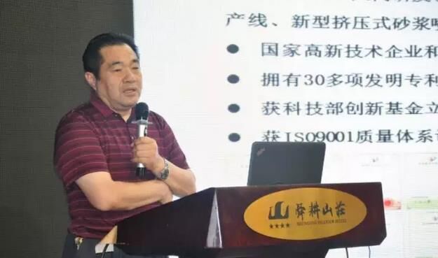 ▼ 中國加氣混凝土協(xié)會(huì)副會(huì)長兼應(yīng)用技術(shù)部主任高連玉做“科學(xué)發(fā)展預(yù)拌砂漿,全面促進(jìn)墻材革新”的演講;
